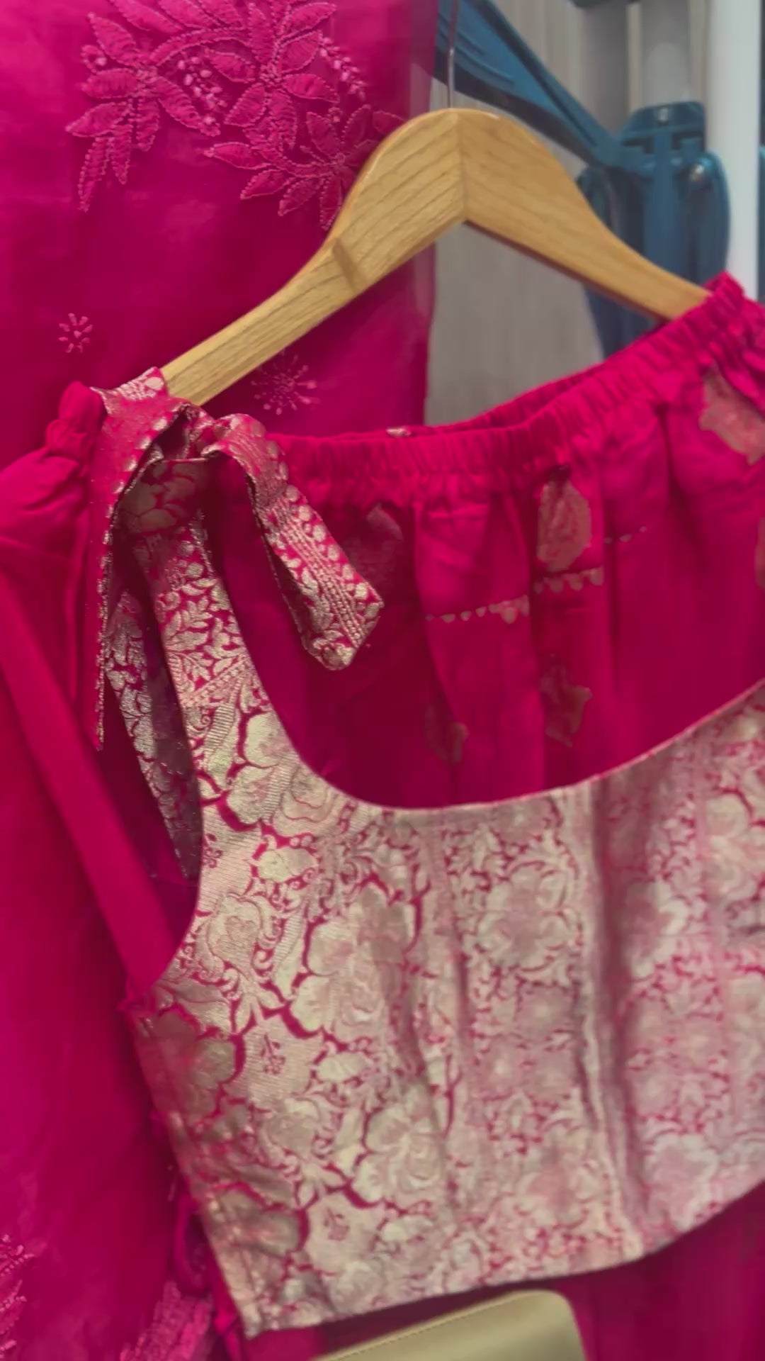 A statement Banarasi style brocade corset featuring intricate zari weaving and adjustable tie-up detailing — designed to elevate festive layering with a contemporary fusion silhouette.